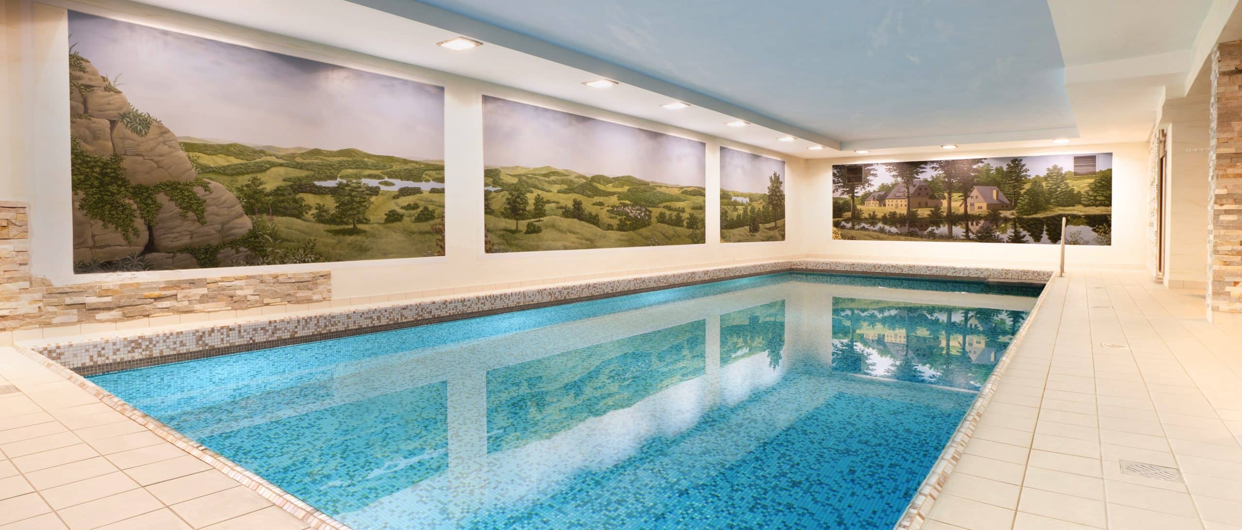 Starten Sie Ihre Auszeit mit ein paar belebenden Bahnen im Schwimmbad und spüren Sie die Kraft der Gegenstromanlage, die Ihr Training intensiviert. Anschließend entspannen Sie im Ruhebereich oder genießen auf der großzügigen Liegewiese unter freiem Himmel die Sonne.